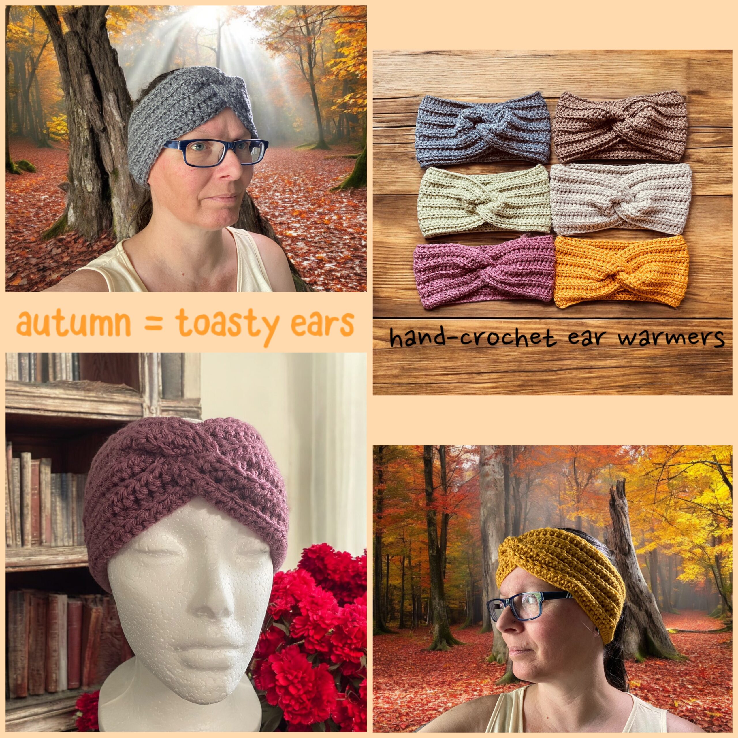 Keep your ears toasty warm in cooler weather with our hand-crochet ear warmers. They are individually made with love and come in a variety of colors . Our ear warmers are easily cleaned in the washer and get softer each time. Makes a perfect, thoughtful gift.